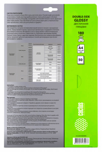 Фотобумага Cactus CS-GA418050DS A4/180г/м2/50л./белый глянцевое/глянцевое для струйной печати