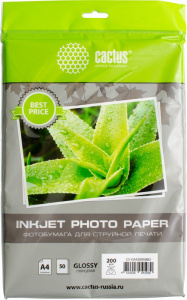 Фотобумага Cactus CS-GA420050ED A4/200г/м2/50л./белый глянцевое для струйной печати