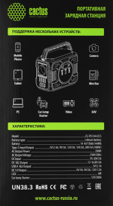 Электростанция портативная Cactus CS-PCS144-EC5 40000mAh 5A 2xUSB черный/зеленый