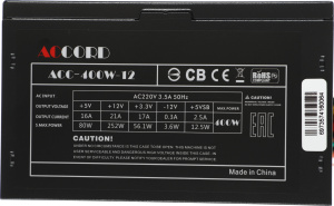 Блок питания Accord ATX 400W ACC-400W-12 (20+4pin) 120mm fan 4xSATA