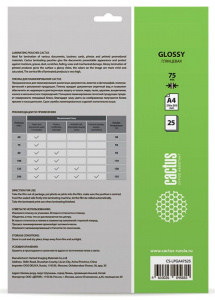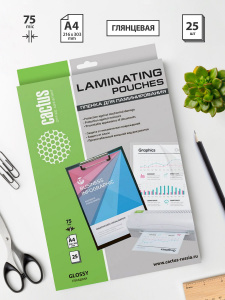 Пленка для ламинирования Cactus 75мкм A4 (25шт) глянцевая 216x303мм CS-LPGA47525