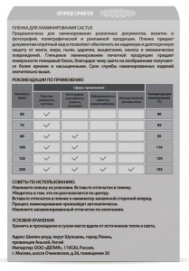 Пленка для ламинирования Cactus 125мкм A7 (100шт) глянцевая 75x105мм CS-LPGA7125100
