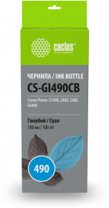 Чернила Cactus CS-GI490CB GI-490 голубой 100мл для Canon Pixma G1400/G2400/G3400
