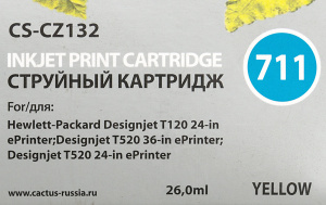 Картридж струйный Cactus CS-CZ132 №711 желтый (26мл) для HP DJ T120/T520/530 с чипом