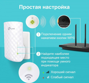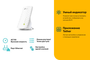 Повторитель беспровод. сигнала TP-Link RE220 AC750 10/100BASE-TX бел.(треб.переходник вилки UK в РФ)